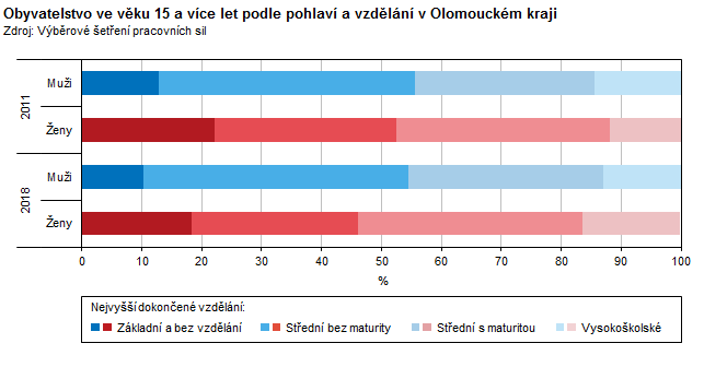 Obyvatelstvo ve věku 15 a více let podle pohlaví a vzdělání v Olomouckém kraji