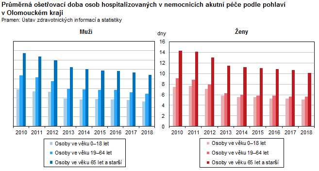 Průměrná ošetřovací doba osob hospitalizovaných v nemocnicích akutní péče podle pohlaví v Olomouckém kraji