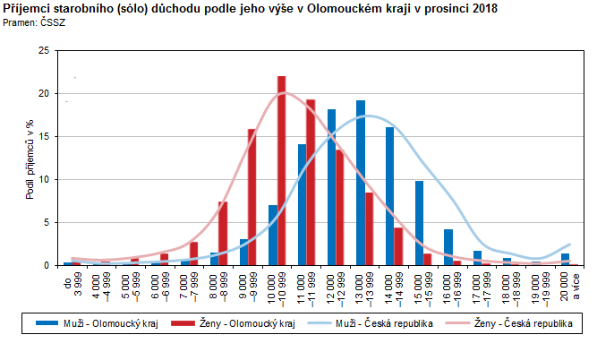 Příjemci starobního (sólo) důchodu podle jeho výše v Olomouckém kraji v prosinci 2018