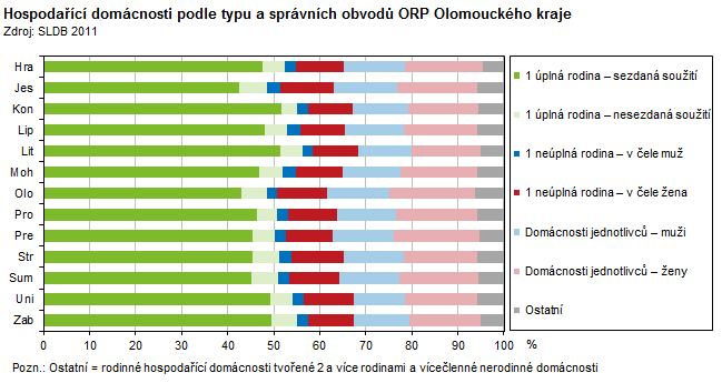 Hospodařící domácnosti podle typu a správních obvodů ORP Olomouckého kraje
