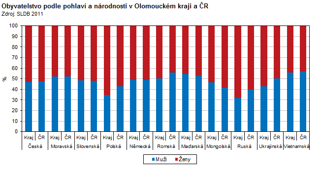 Obyvatelstvo podle pohlaví a národností v Olomouckém kraji a ČR