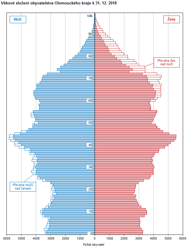 Věkové složení obyvatelstva Olomouckého kraje k 31. 12. 2018