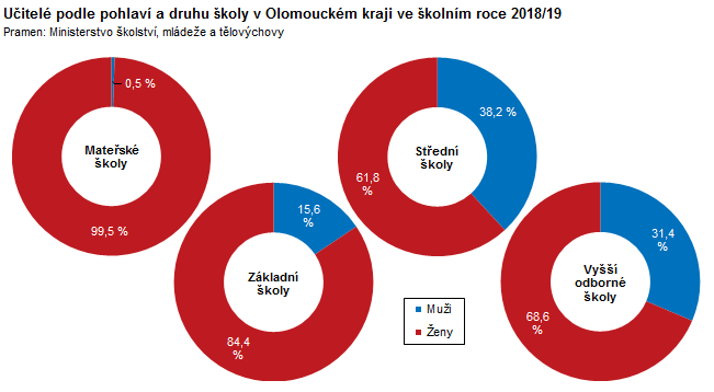 Učitelé podle pohlaví a druhu školy v Olomouckém kraji ve školním roce 2018/2019