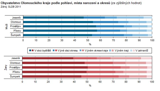Obyvatelstvo Olomouckého kraje podle pohlaví, místa narození a okresů