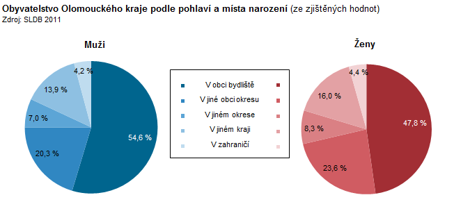 Obyvatelstvo Olomouckého kraje podle pohlaví a místa narození