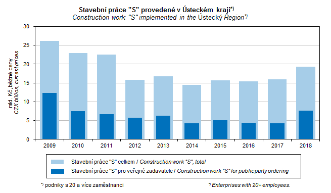 Graf 34. Stavební práce ˝S˝ provedené v Ústeckém kraji