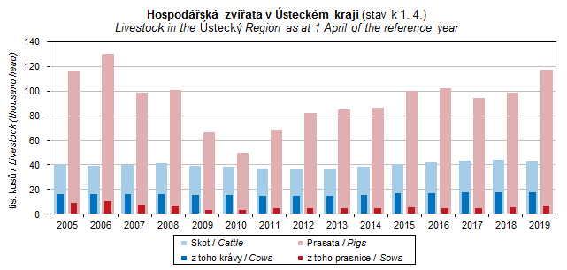 Graf 26. Hospodářská zvířata v Ústeckém kraji (stav k 1. 4.)