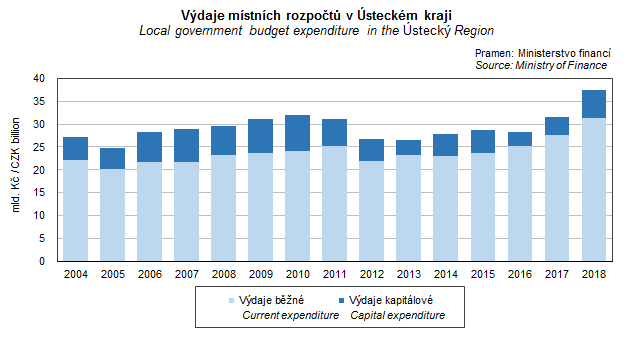 Graf 16. Výdaje místních rozpočtů v Ústeckém kraji