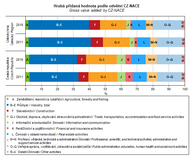 Graf 13. Hrubá přidaná hodnota podle odvětví CZ-NACE