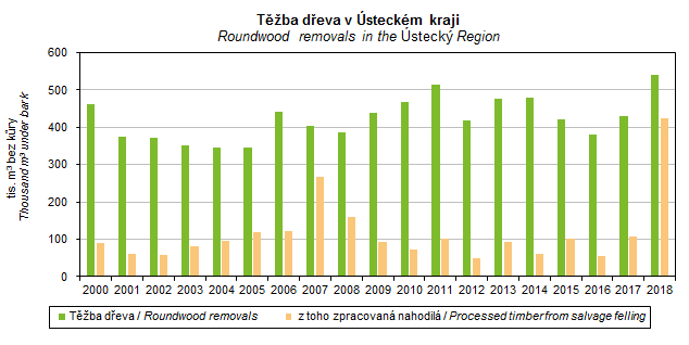 Graf 29. Těžba dřeva v Ústeckém kraji