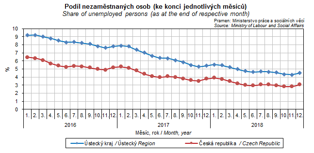 Graf 20. Podíl nezaměstnaných osob (ke konci jednotlivých měsíců)