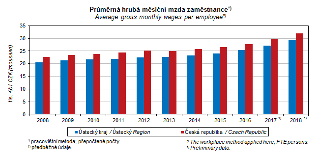 Graf 19. Průměrná hrubá měsíční mzda zaměstnance