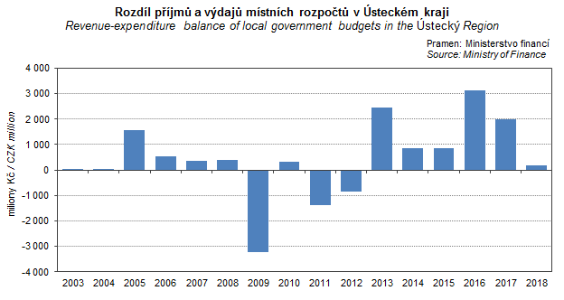 Graf 17. Rozdíl příjmů a výdajů místních rozpočtů v Ústeckém kraji