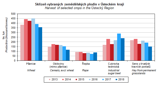 Graf 25. Sklizeň vybraných zemědělských plodin v Ústeckém kraji