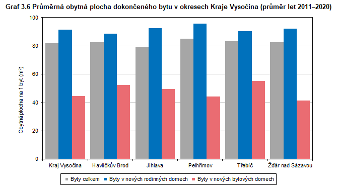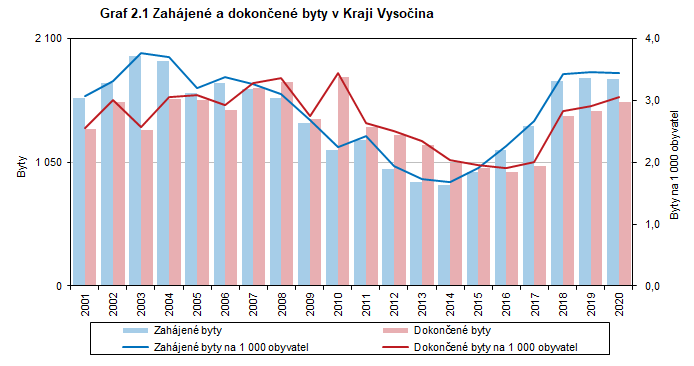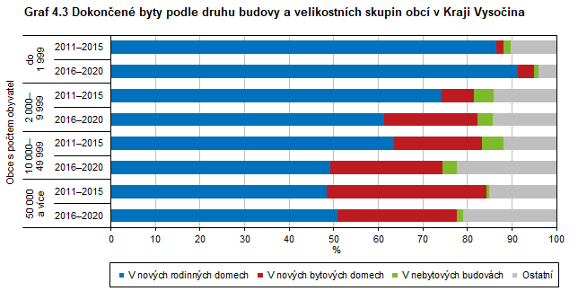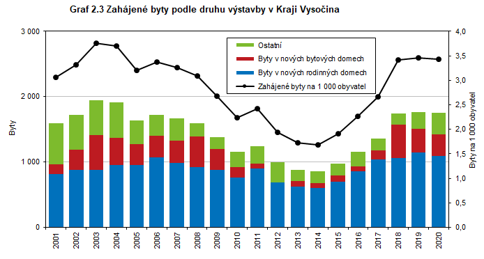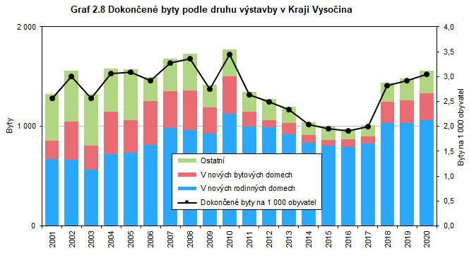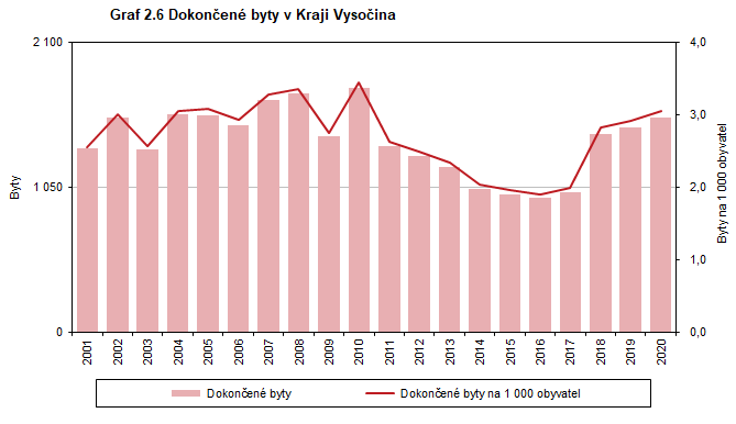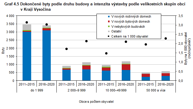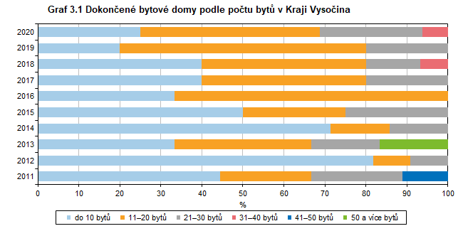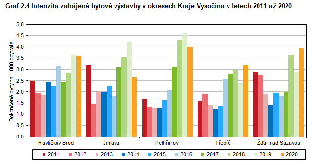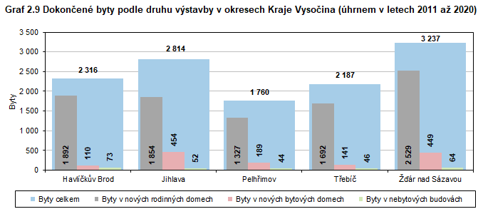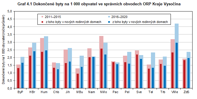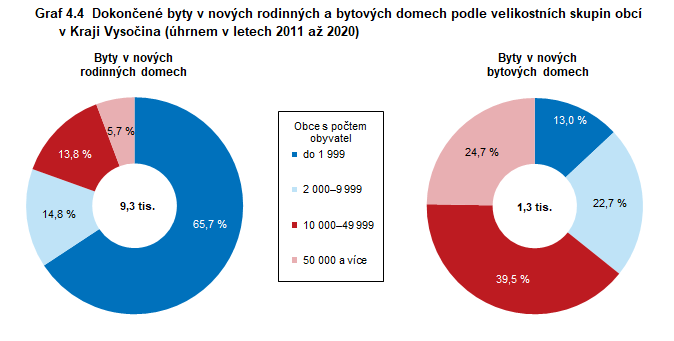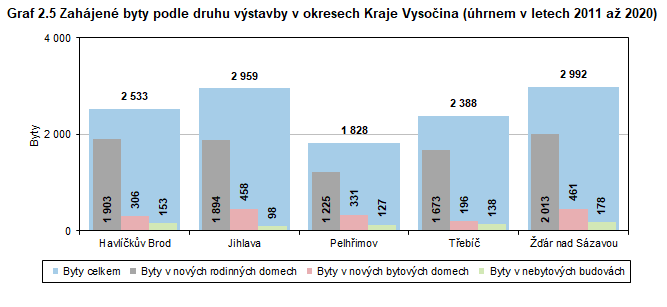 Rozmístění dokončené bytové výstavby v Kraji Vysočina