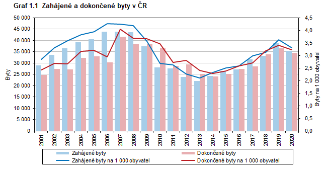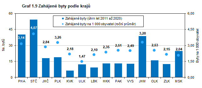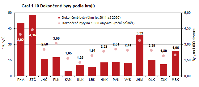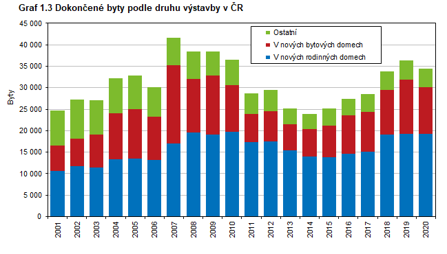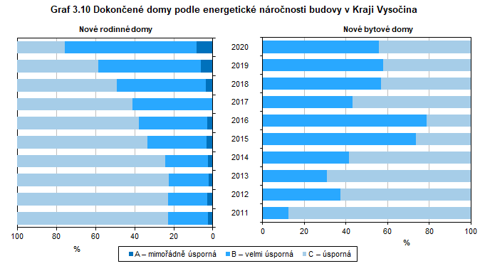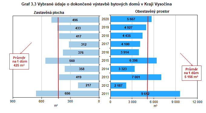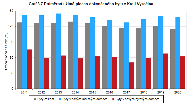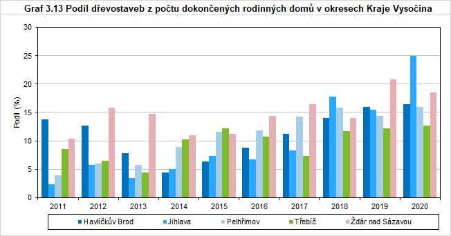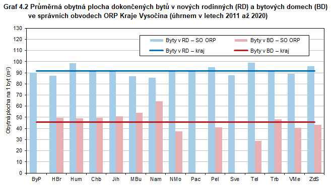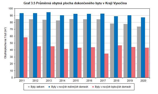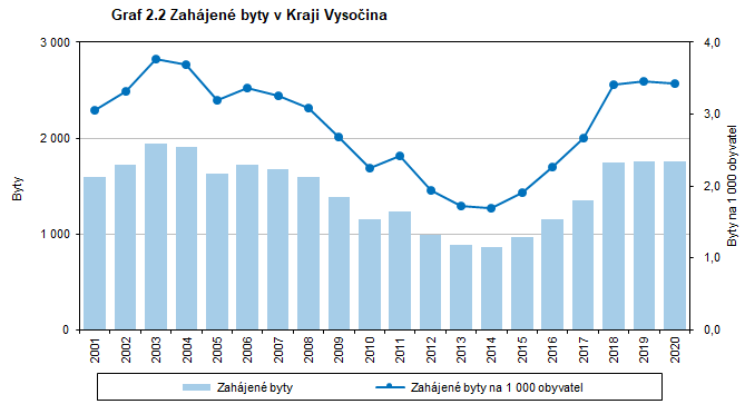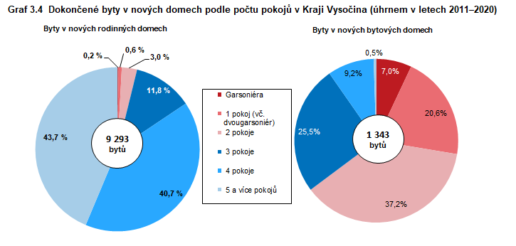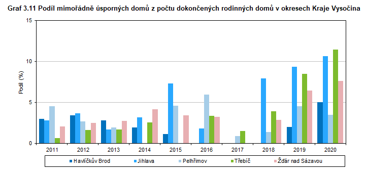 Rozmístění dokončené bytové výstavby v Kraji Vysočina