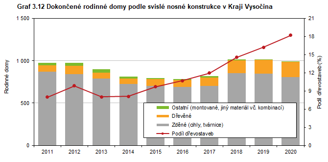 Bytová výstavba v Kraji Vysočina a jeho okresech podle fází