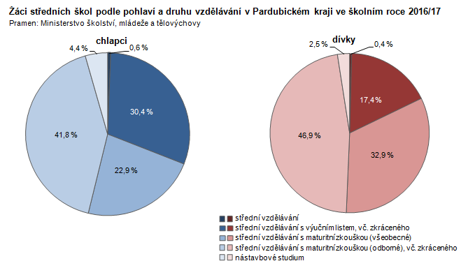 Žáci středních škol podle pohlaví a druhu vzdělávání v Pardubickém kraji ve školním roce 2016/17