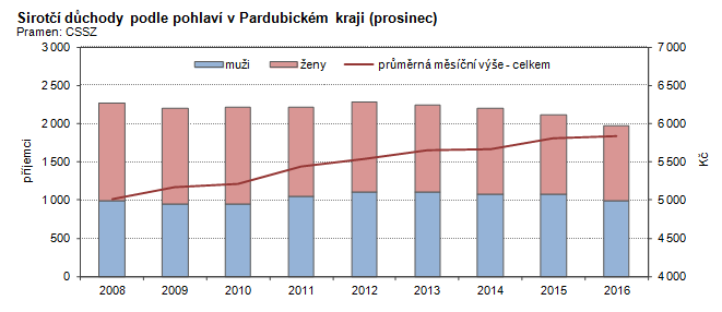 Sirotčí důchody podle pohlaví v Pardubickém kraji (prosinec)