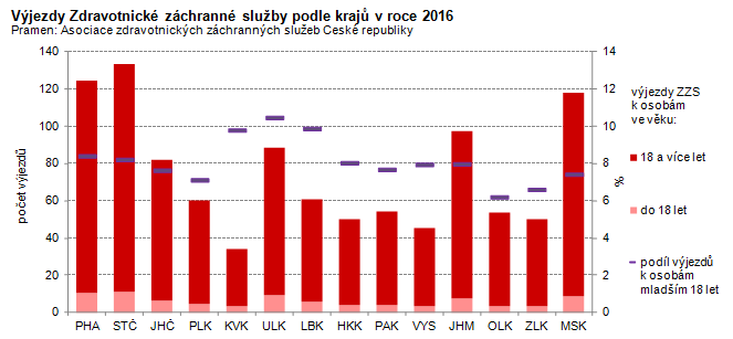 Výjezdy Zdravotnické záchranné služby Pardubického kraje k dětem a mladistvým do 18 let