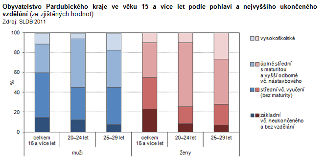 Obyvatelstvo Pardubického kraje ve věku 15 a více let podle pohlaví a nejvyššího ukončeného vzdělání