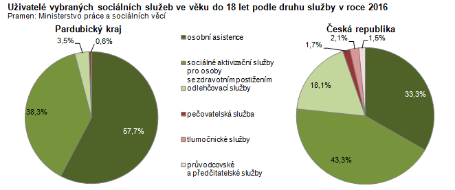 Uživatelé vybraných sociálních služeb ve věku do 18 let podle druhu služby v roce 2016