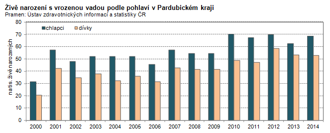 Živě narození s vrozenou vadou podle pohlaví v Pardubickém kraji