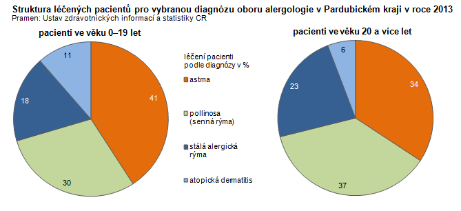 Struktura léčených pacientů pro vybranou diagnózu oboru alergologie v Pardubickém kraji v roce 2013