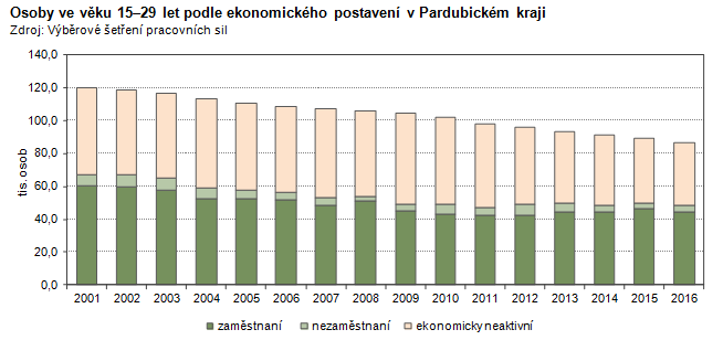 Osoby ve věku 15–29 let podle ekonomického postavení v Pardubickém kraji