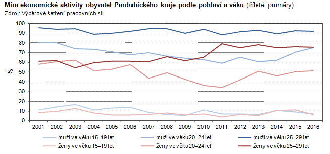 Míra ekonomické aktivity obyvatel Pardubického kraje podle pohlaví a věku