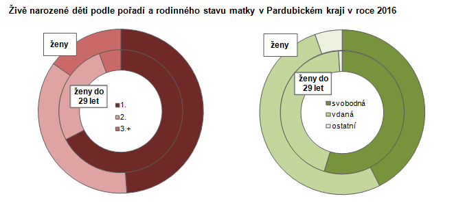 Živě narozené děti podle pořadí a rodinného stavu matky v Pardubickém kraji v roce 2016