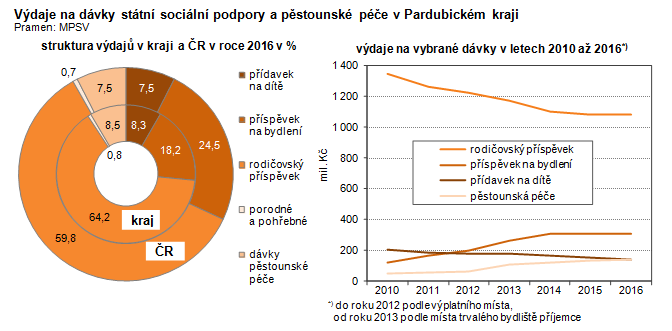 Výdaje na dávky státní sociální podpory a pěstounské péče v Pardubickém kraji