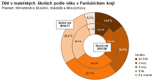 Děti v mateřských školách podle věku v Pardubickém kraji