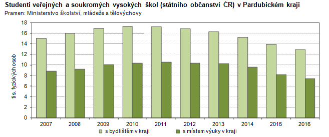 Studenti veřejných a soukromých vysokých škol (státního občanství ČR) v Pardubickém kraji