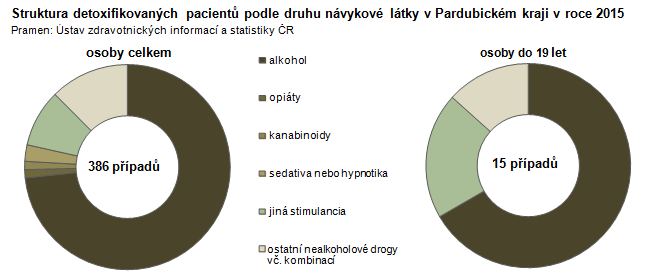 Struktura detoxifikovaných pacientů podle druhu návykové látky v Pardubickém kraji v roce 2015