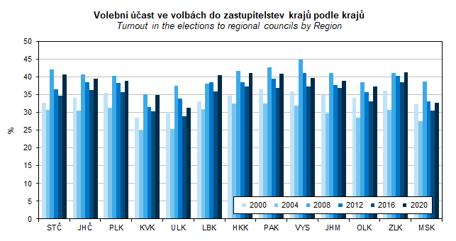 Graf 48. Volební účast ve volbách do zastupitelstev krajů podle krajů
