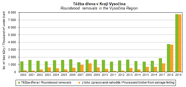 Graf 30. Těžba dřeva v Kraji Vysočina
