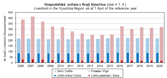 Graf 27. Hospodářská zvířata v Kraji Vysočina (stav k 1. 4.)