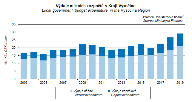Graf 17. Výdaje místních rozpočtů v Kraji Vysočina