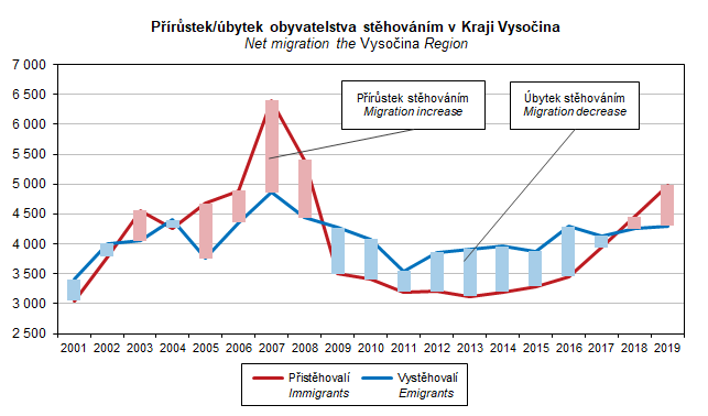 Graf 11. Přírůstek/úbytek obyvatelstva stěhováním v Kraji Vysočina