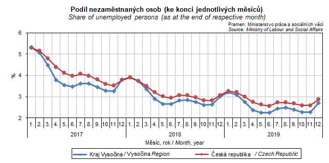 Graf 21. Podíl nezaměstnaných osob (ke konci jednotlivých měsíců)