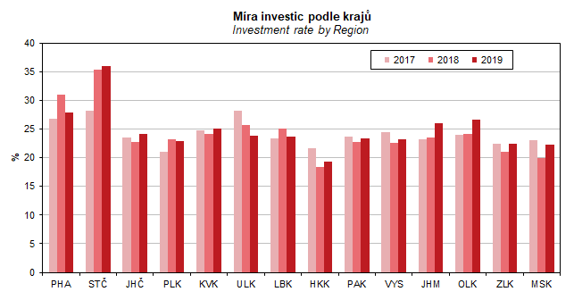 Graf 15. Míra investic podle krajů
