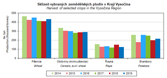 Graf 26. Sklizeň vybraných zemědělských plodin v Kraji Vysočina