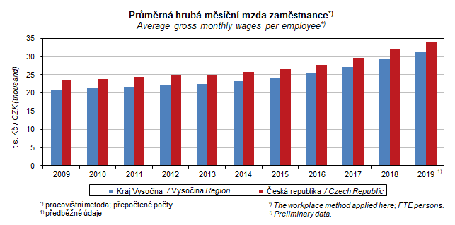 Graf 20. Průměrná hrubá měsíční mzda zaměstnance