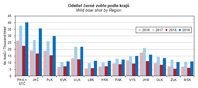 Graf 31. Odstřel černé zvěře podle krajů