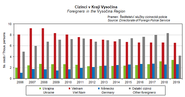 Graf 13. Cizinci v Kraji Vysočina
