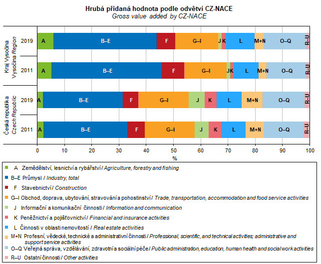 Graf 14. Hrubá přidaná hodnota podle odvětví CZ-NACE