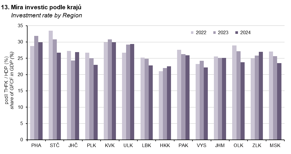 Graf 34 Stavební práce "S" v tuzemsku podle krajů v roce 2024