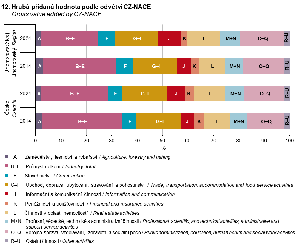 Graf 12 Hrubá přidaná hodnota podle odvětví CZ-NACE