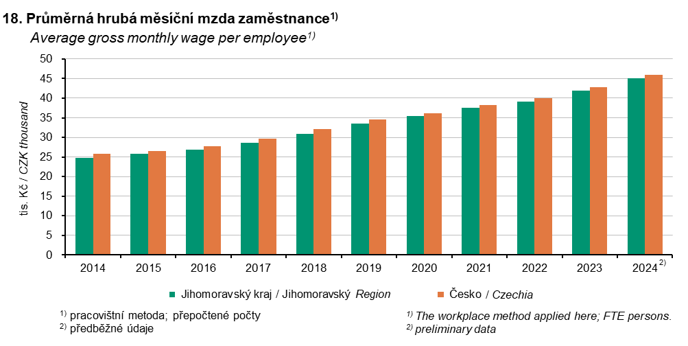 Graf 18 Průměrná hrubá měsíční mzda zaměstnance